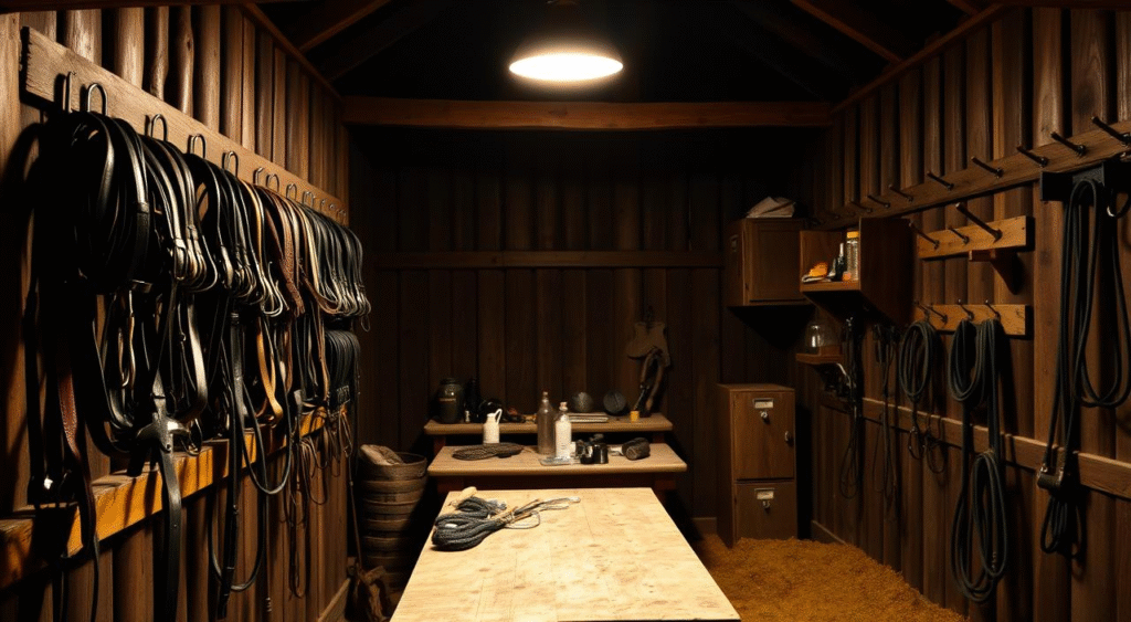 - Storing tack near chemicals – fertilizers, strong cleaners, or fuel can dry or stain leather.